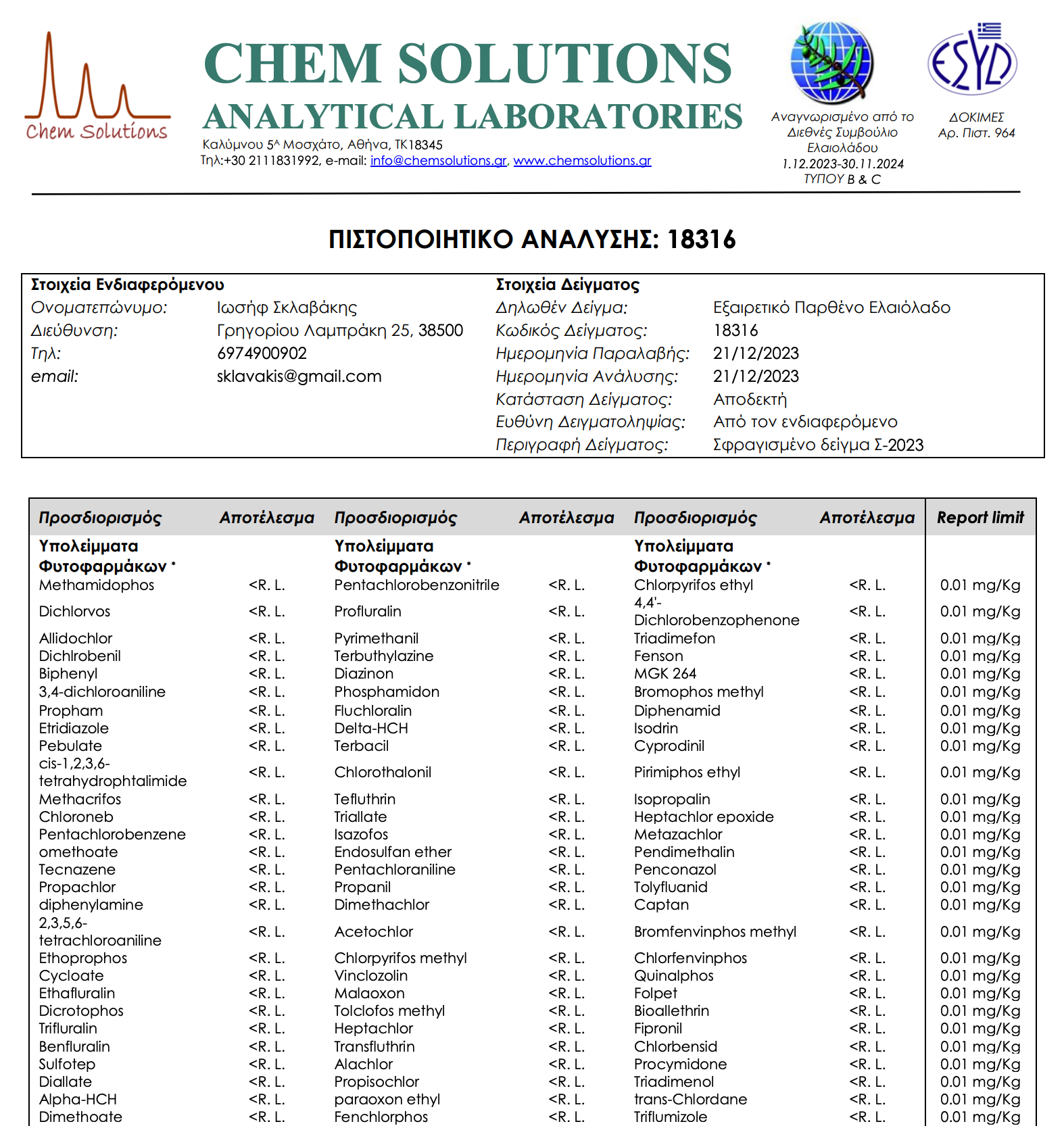 All tested pesticide residues were below the reporting limit, confirming the exceptional purity of this harvest.